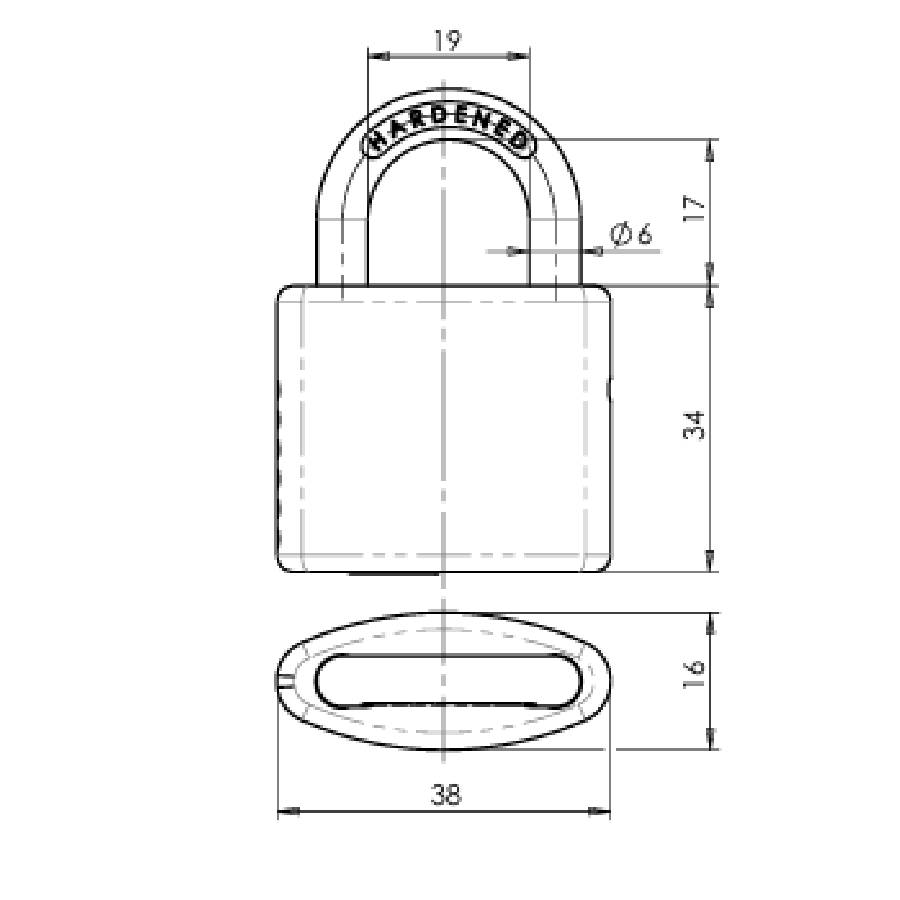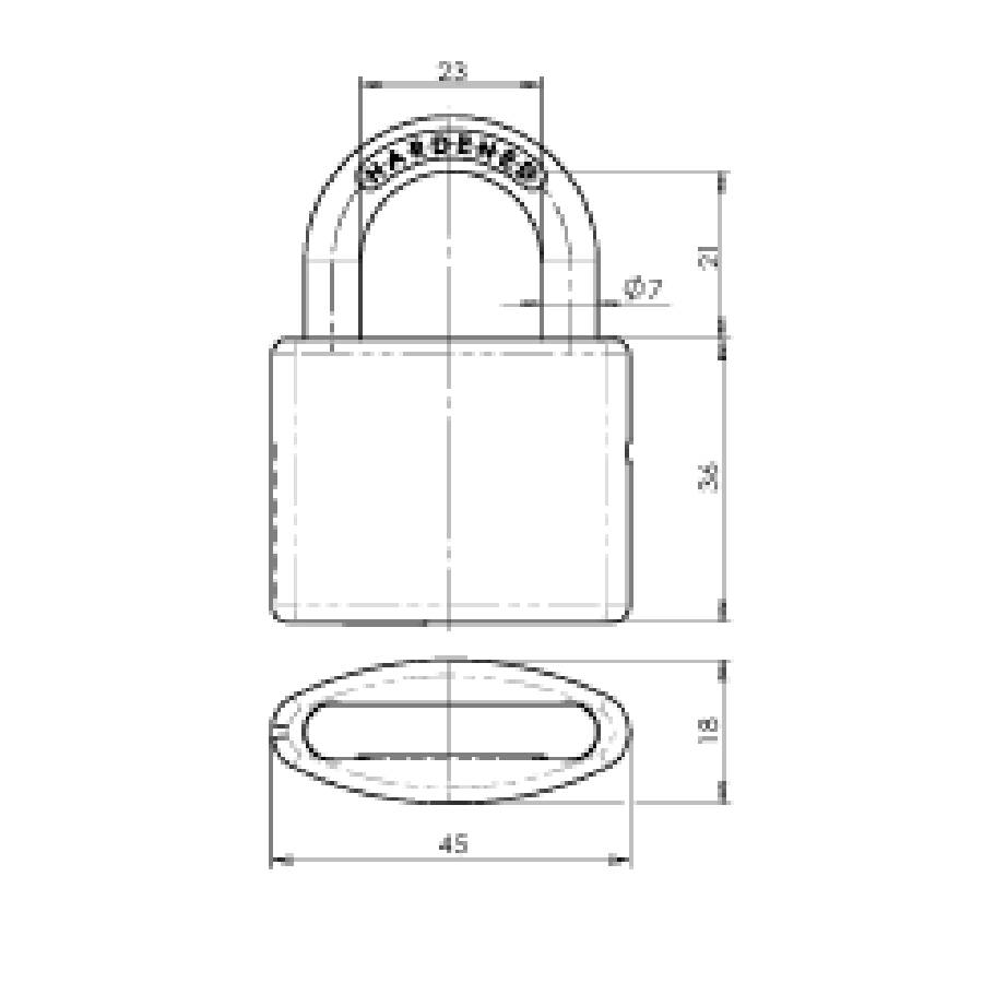 Štandardný visiaci zámok so strmeňom v štyroch rôznych veľkostiach sa používa pre základné zabezpečenie, dodáva sa s troma kľúčmi. Visiaci zámok by sa mal chrániť pred priamym kontaktom s vodou.